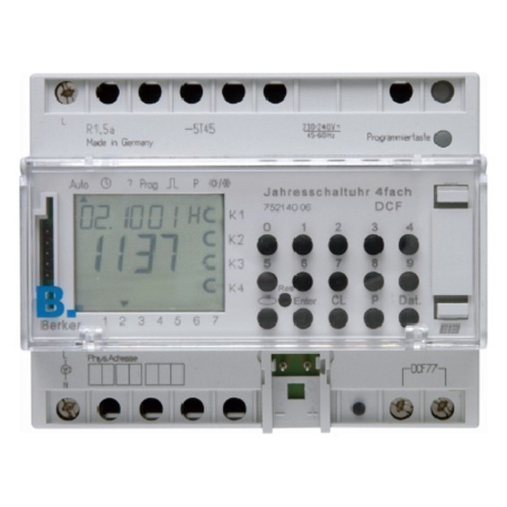 Годовой таймер, 4-канальный, DCF, REG цвет: светло-серый instabus KNX/EIB