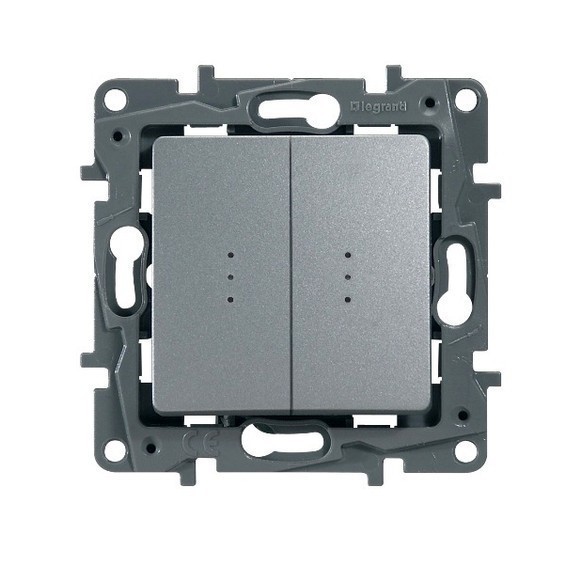 Переключатель 2-клавишный Legrand QUTEO-ETIKA, с подсветкой, скрытый монтаж, алюминий, 672416